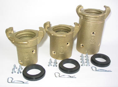 Q2 Nylon Hose Coupling & Nozzle Holder The Genuine Clemco Nylon Coupling is double safe, leak tight, reliable and durable. Moulded with remarkable precision, the lightweight couplings twist easily to a locking position. A spring steel safety wire automatically engages two sets of holes in the coupling flanges adding back-up security. Clemco has chosen the finest Nylon material available to produce a coupling with qualities superior to brass with a price comparable to aluminium. All Clemco fittings are supplied with screws and gaskets. |