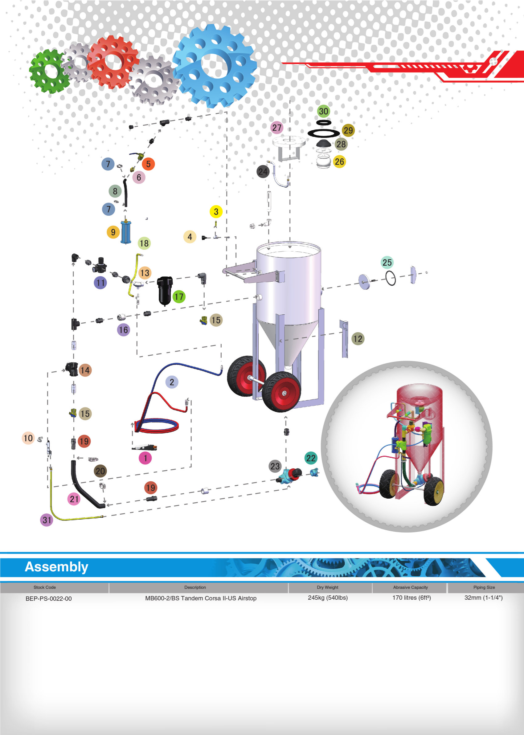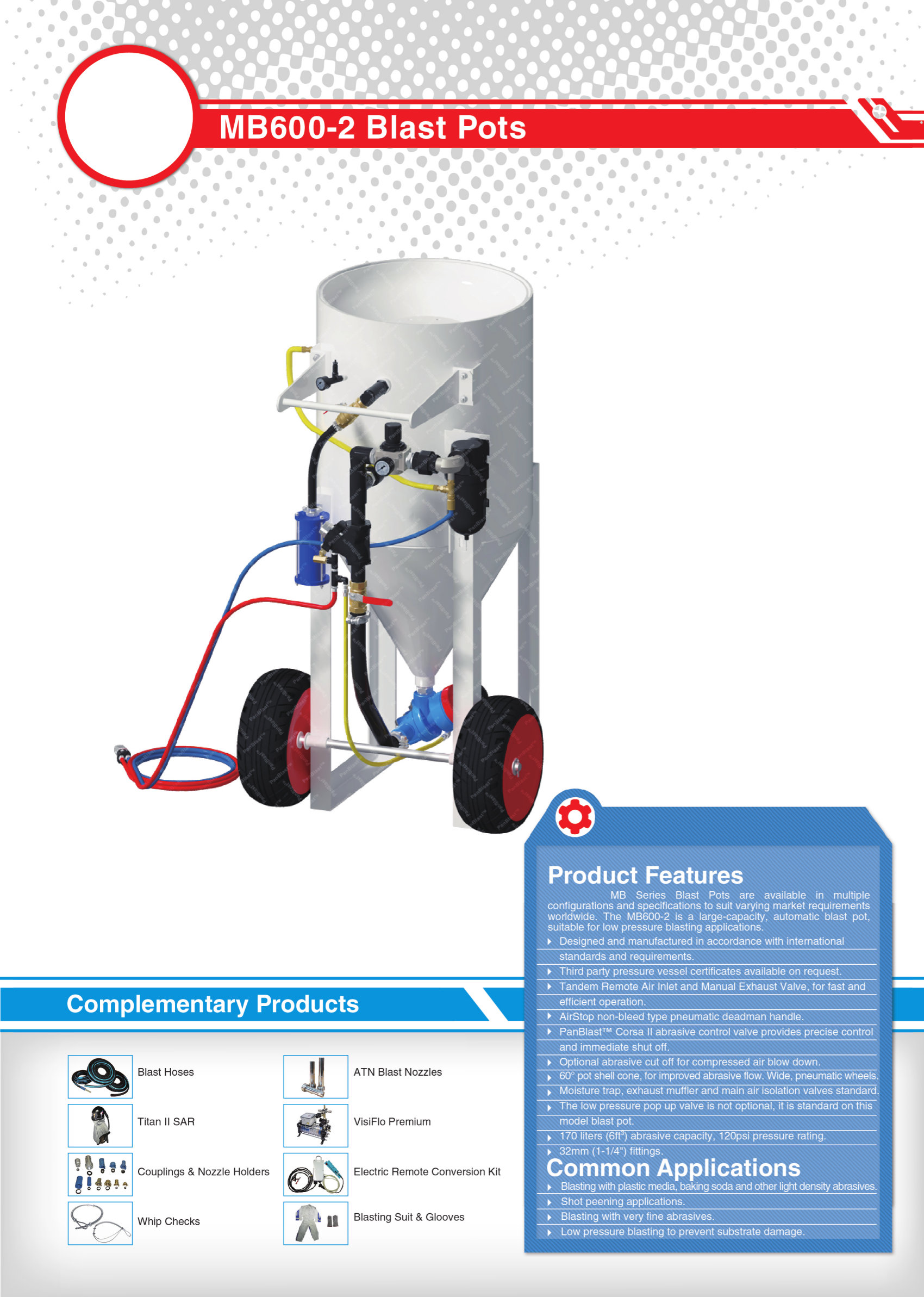600lb Plastic/Soda Blast Pot Specifications & Parts