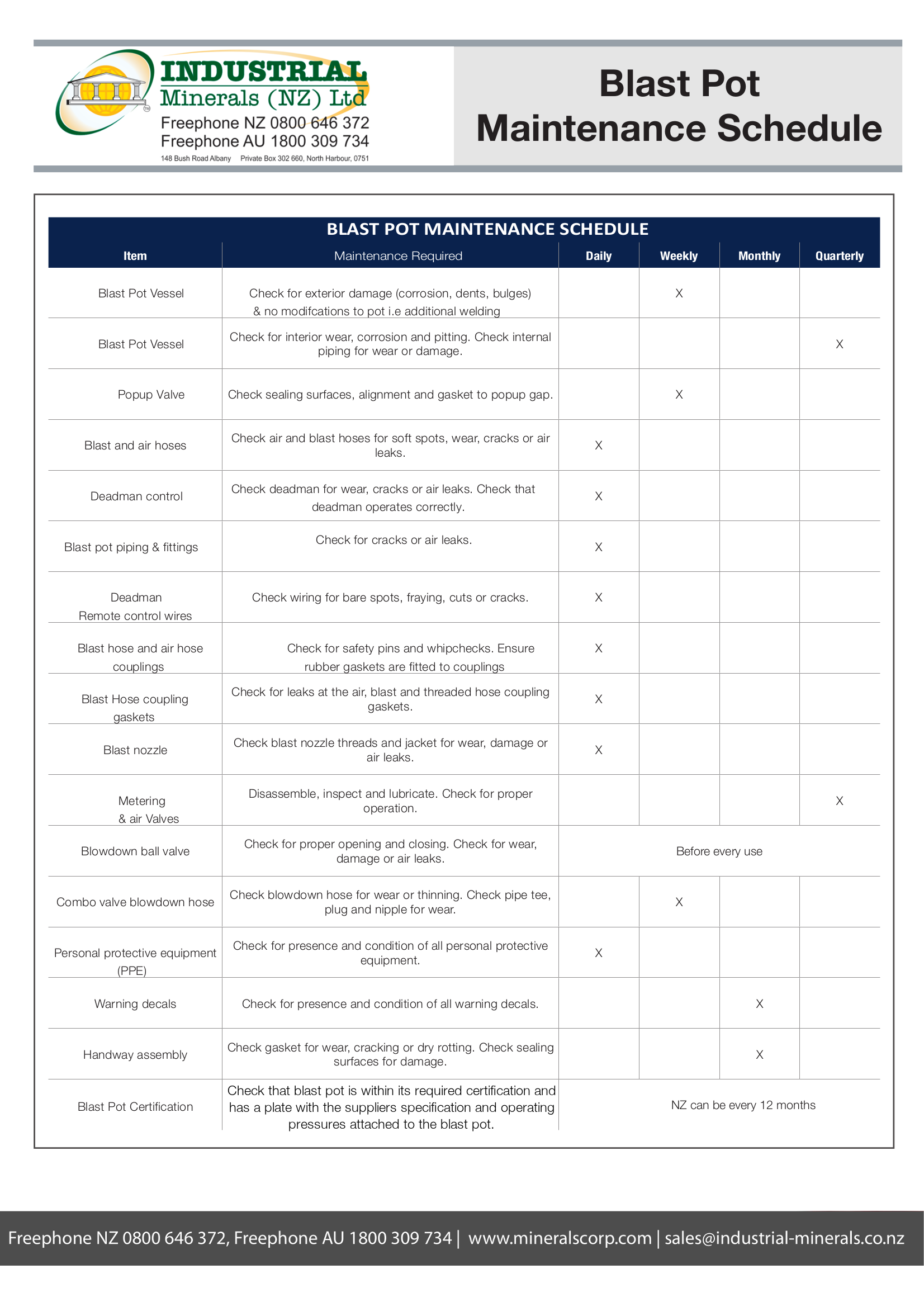 Industrial Minerals has taken over IBIX New Zealand adding a range of speciality lightweight, single operator blast cleaning systems to their extensive blast equipment range.