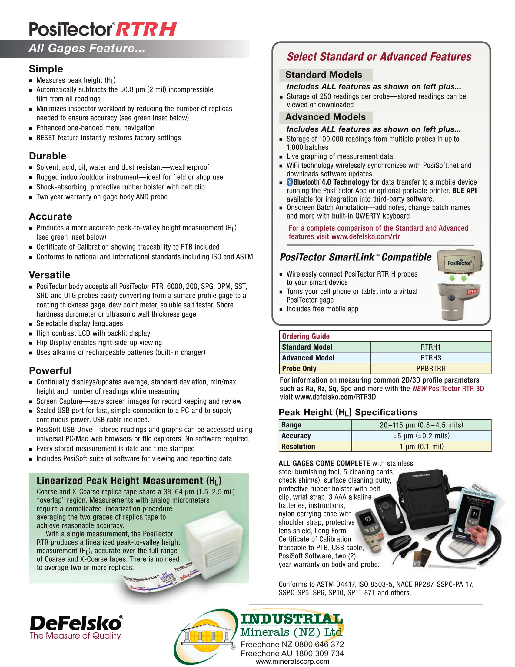 Defelsko Positector RTR Replica Tape Reader Specifications