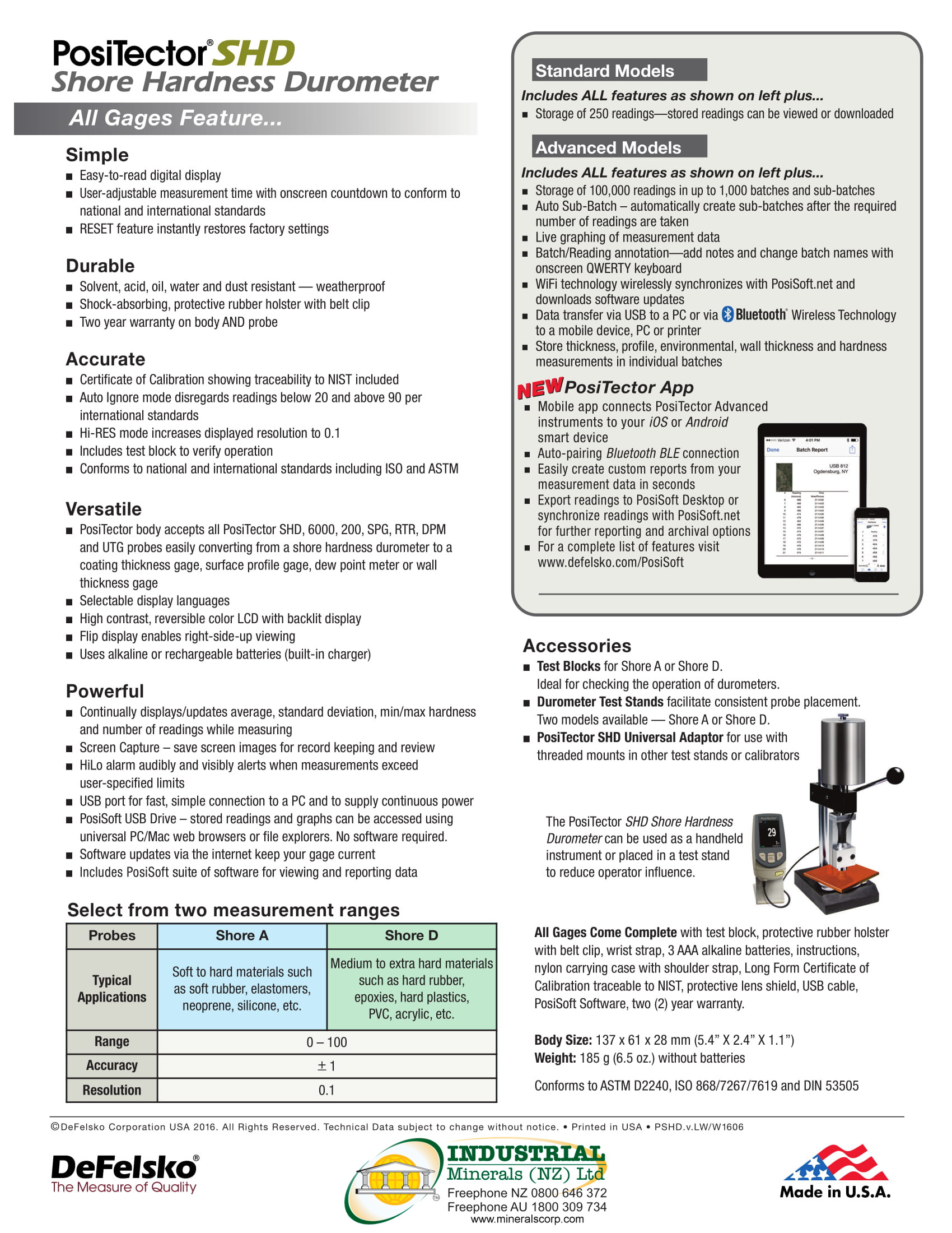 Defelsko Positector SHD Shore Hardness Durometer Specifications
