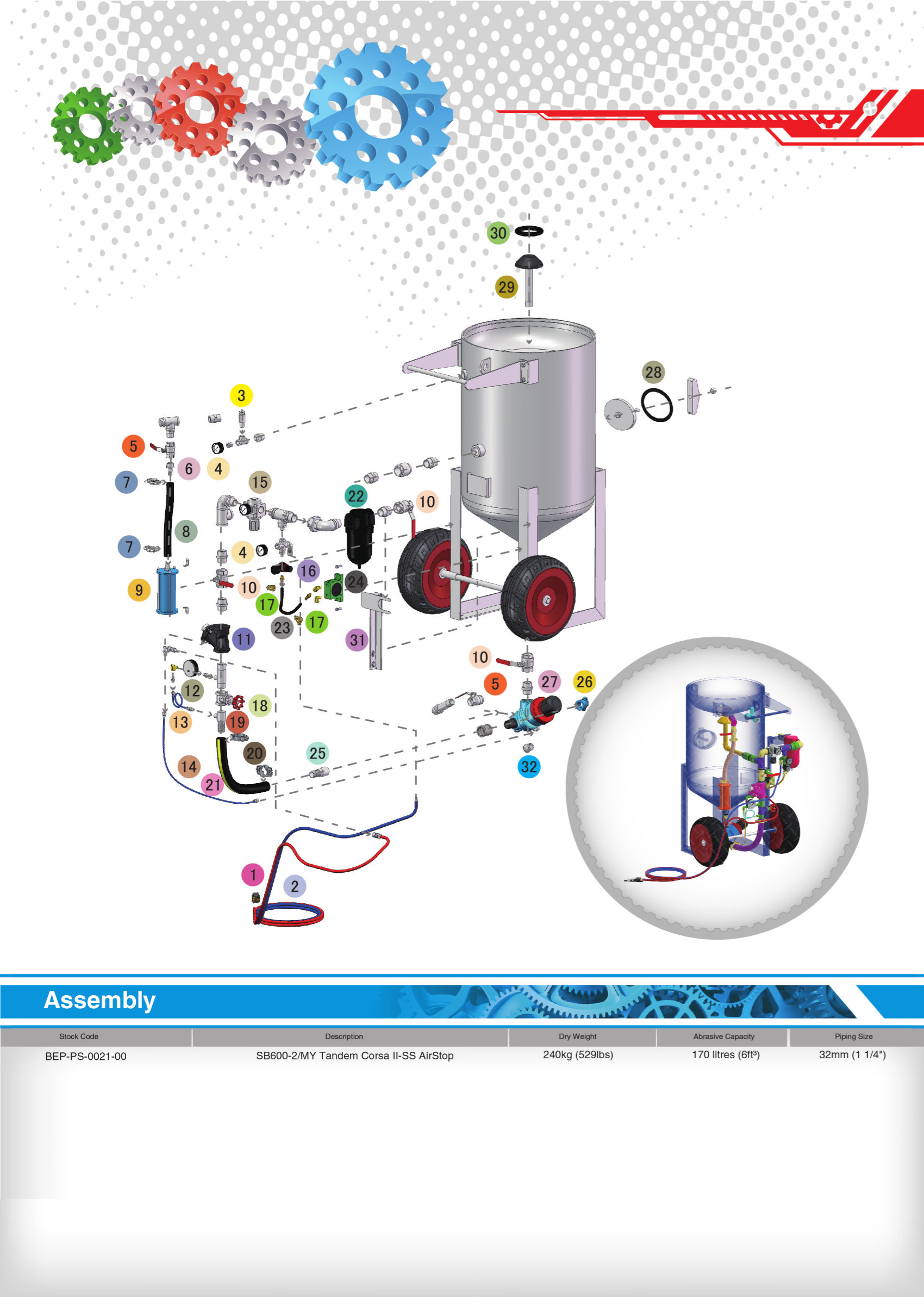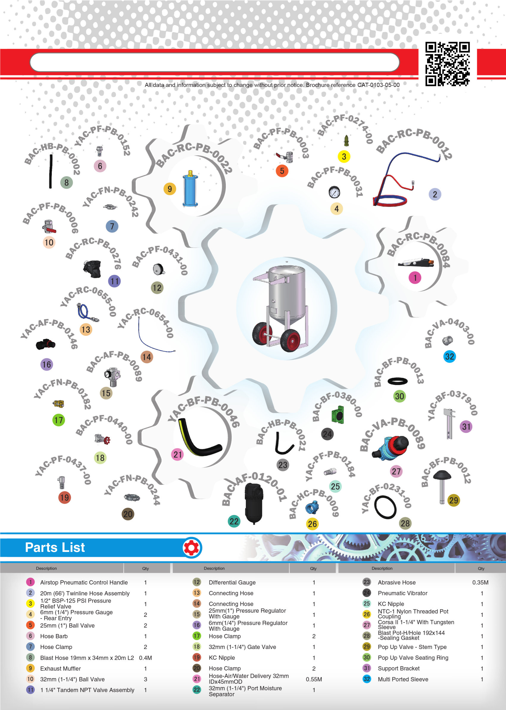 300lb/600lb Soda Blast Pot Specifications & Parts